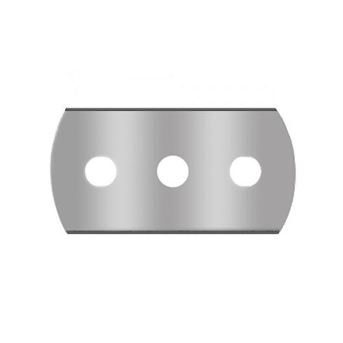 3 hole double edge razor with rounded edges for slitting- and converting operations. Round corners for extra safety.